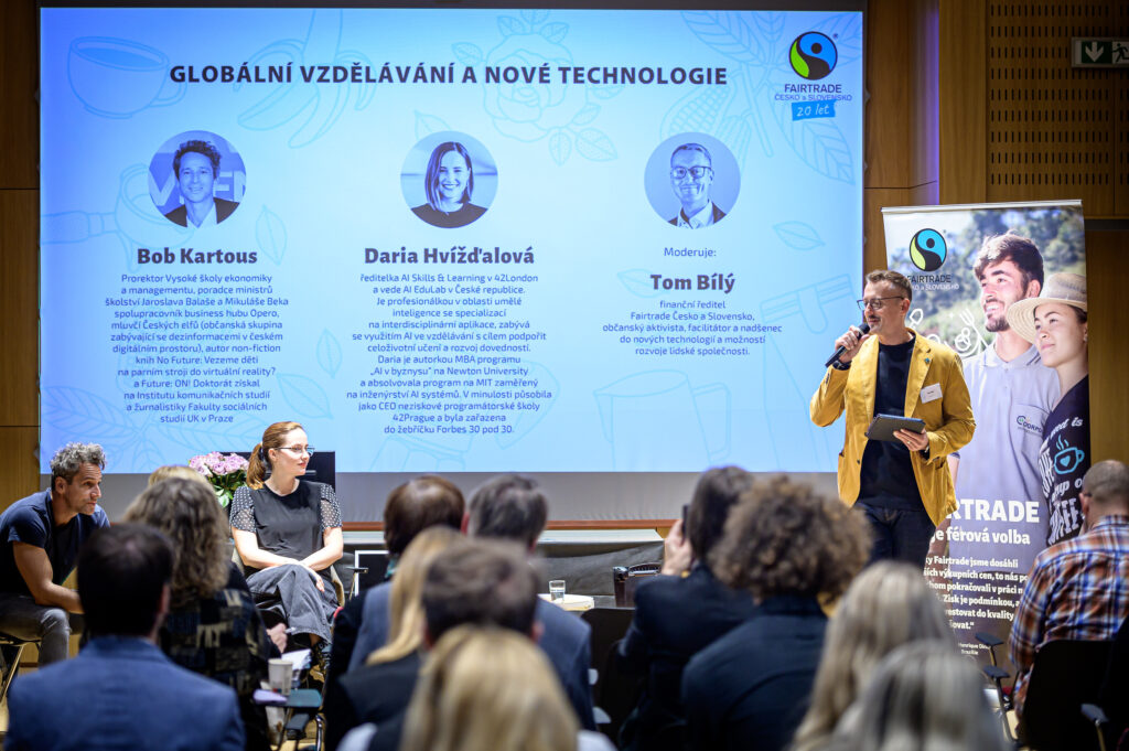 Lubomír Kadaně, ředitel Fairtrade Česko a Slovensko, popsal také počátky Fairtrade během uplynulých dvou dekád a zdůraznil významný nárůst v prodejích, který přišel s poptávkou zákazníků a po vstupu fairtradového zboží do prodejů v řetězcích.